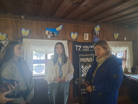 Майбутні перекладачі відпрацьовували навички усного послідовного перекладу разом з екскурсоводом музею Анною Бокаревою в реальних умовах, перекладаючи екскурсію українською мовою на англійську мову. Анна Бокарева розповіла багато цікавих фактів про про життя й творчість Івана Котляревського, показала його садибу та описала значення кожного предмету в садибі. Вона також процитувала уривки творів українського письменника.