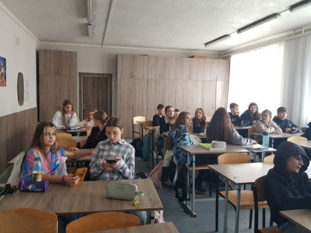 Студентка Кароліна Дажук цієї ж спеціальності розповіла учням про університет німецькою мовою та запропонувала їм вікторину німецькою мовою.