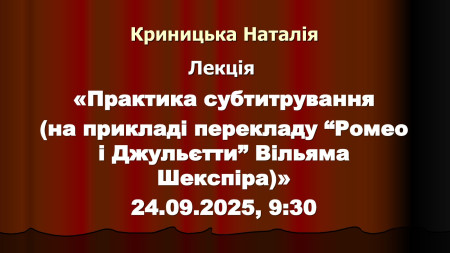 Тема: Відкрита лекція "Практика субтитрування (на прикладі перекладу "Ромео і Джульєтти" Вільяма Шекспіра)"
