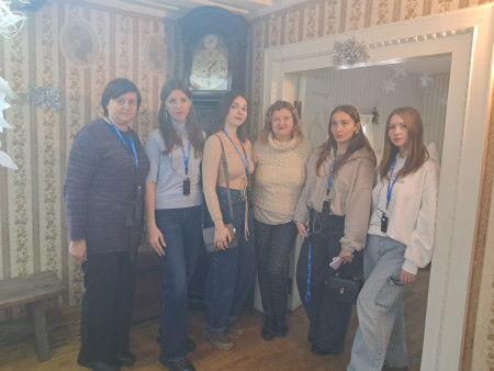 10 грудня 2025 року студенти другого та четвертого курсів освітньо-професійної програми «Філологія (Германські мови та літератури (переклад включно), перша – англійська)» Полтавського університету економіки і торгівлі разом з доцентом кафедри ділової іноземної мови Валентиною Воскобойник провели виїзне заняття з перекладу в Полтавському літературно-меморіальному музеї Івана Котляревського.