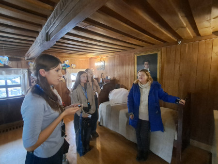 Майбутні перекладачі відпрацьовували навички усного послідовного перекладу разом з екскурсоводом музею Анною Бокаревою в реальних умовах, перекладаючи екскурсію українською мовою на англійську мову. Анна Бокарева розповіла багато цікавих фактів про про життя й творчість Івана Котляревського, показала його садибу та описала значення кожного предмету в садибі. Вона також процитувала уривки творів українського письменника.
