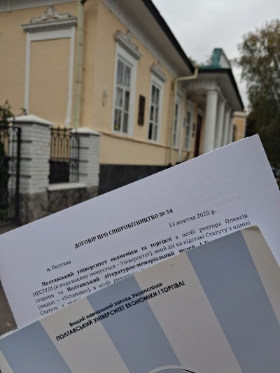 8 жовтня 2025 року в Полтавському університеті економіки і торгівлі відбулося урочисте підписання договору про співпрацю між ПУЕТ та Полтавським літературно-меморіальним музеєм Панаса Мирного.