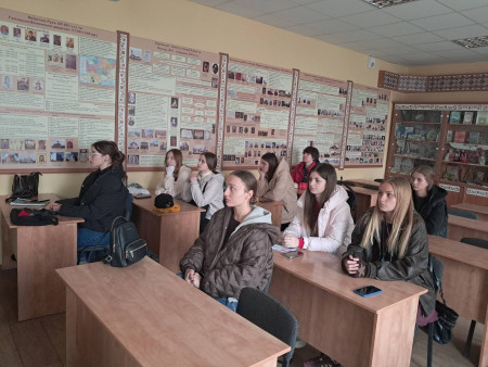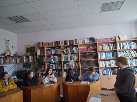 Потім разом зі студенткою четвертого курсу першого (бакалаврського) рівня освіти спеціальності 035.041 Германські мови та літератури (переклад включно), перша – англійська Оксаною Зелененькою учні відпрацювали навички послідовного усного перекладу з англійської на українську мову.