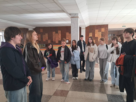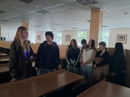 На завершення заходу майбутні перекладачі другого курсу першого (бакалаврського) рівня Катерина Четвирикова та Данило Круглик провели учням екскурсію університетом англійською мовою, під час якої школярі також змогли відпрацювати навички усного послідовного перекладу з англійської на українську мову.