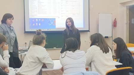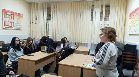 Саме новими враженнями, ідеями, проектами та баченнями самої суті студентського самоврядування і ділиться Настя зі студентами своєї групи в своїй презентації англійською мовою на занятті з ділової англійської мови.